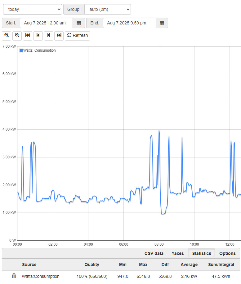 This is a query that gets the daily energy usage of my water heater for use with Grafana.